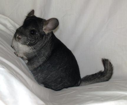 At Cuddle Bug Chinchillas, all rescued chinchillas are treated like our breeding and show animals. It all starts with receiving the chinchilla. This is initiated by either a phone call or email from the chinchilla's owner. Sometimes, the owner receives an email from us offering to take the animal in to our shelter. Arrangements are made for the chinchilla to be brought to our location or to be picked up by us. Once here, the chinchilla is checked over to see if there is any immediate need for medical care. After that, the chinchilla is put in quarantine for a minimum of 30 days. During this time, the chinchilla's health and temperament are monitored and they are switched over to the feed we use. After the quarantine is lifted, the chinchilla is kept in the chinchilla room with the herd. Rescued animals are never allowed to breed and are kept in cages with other rescues of the same gender. Cages are cleaned weekly. Fresh food and hay are given daily as is fresh water. All chinchillas are bathed once a week, more often if necessary. Chew toys are given to all chinchillas when needed. Each chinchilla is weighed daily for the first month and then weekly after that. All chinchillas are handled daily. They are also put on the adoptions page of our website. Animals that have behavior or health issues are kept as long as is required to resolve the problems, for the rest of their lives if necessary. Cuddle Bug Chinchillas charges an adoption fee of $85 for each rescue animal or $150 for a pair. We do not ask for a fee to surrender an animal. We try our best to match rescues with good homes.